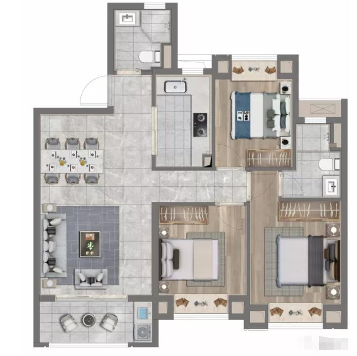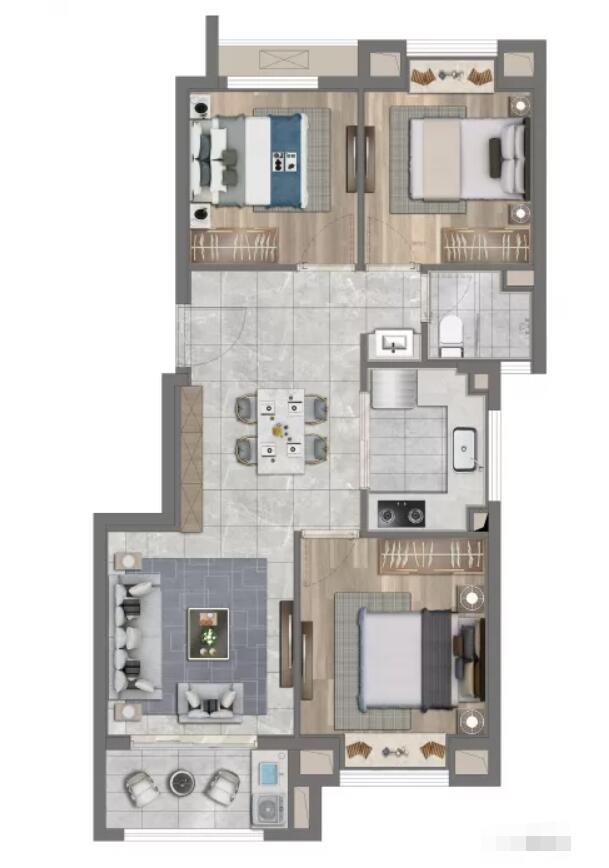 項目目前在售房源為:建面約84㎡三房兩廳一衛,建面約96㎡三房兩廳兩衛兩種戶型。