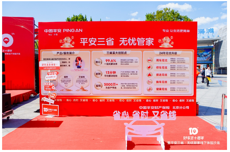 在新中國成立75周年和金融教育宣傳月之際,平安產險北京分公司于9月21日下午,在歡樂谷廣場舉辦了“好車主十周年慶典暨‘平安三省?無憂管家’線下體驗沙龍”,向首都獻禮推出“5大無憂系列,13項尊享服務”的全面服務升級計劃,以實際行動踐行“以人民為中心”的服務宗旨,也是對平安好車主品牌十年歷程的深情回顧。