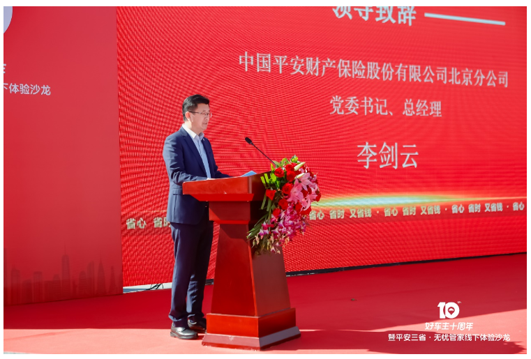 平安產險北京分公司黨委書記、總經理李劍云回顧了平安好車主平臺十年來的歷程,從保險業務的全流程線上化到如今的綜合性服務平臺,每一步都凝聚著平安人的智慧與汗水。他宣布正式推出“平安三省?無憂管家”服務品牌,這不僅是服務的全面升級,更是對客戶承諾的又一次深化。李劍云總經理表示,平安將繼續深化“三省”服務戰略,通過線上線下深度融合,為客戶提供更加精準、高效、全面的保險服務,助力構建和諧社會,滿足人民日益增長的美好生活需要。