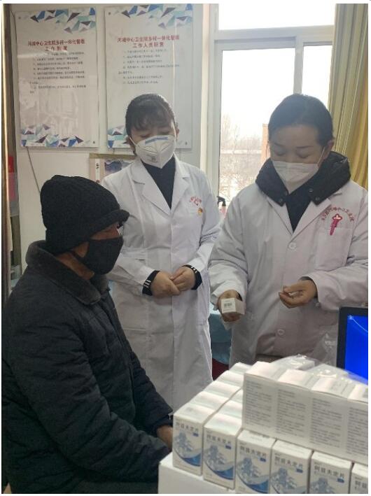 (甘肅省東鄉縣河灘鎮汪胡村衛生院院長馬玲燕、村醫韓勝紅為村民開藥)